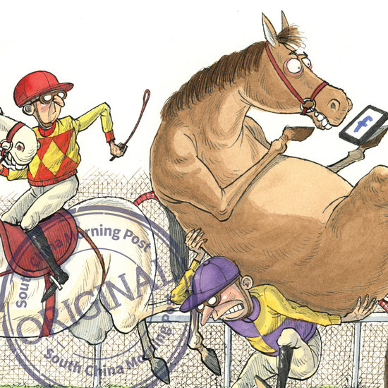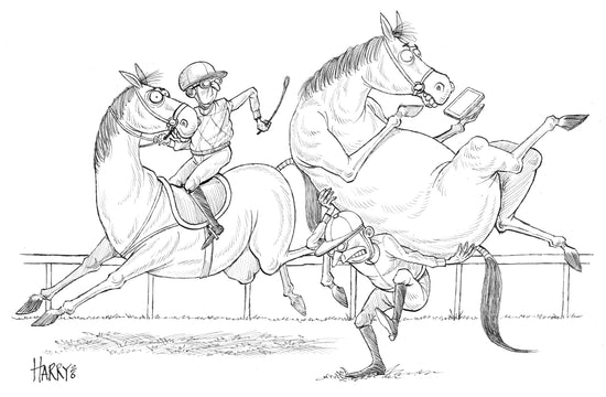 No. 4 of 8 from 'Year of the Horse - Under Starter’s Orders!' one-of-a-kind limited edition illustrations by award-winning political cartoonist Harry Harrison.